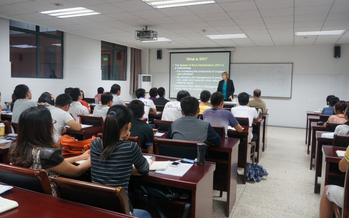 9月24日上午,我院在食品科学与工程楼学术报告厅举行专题学术讲座,特邀康奈尔大学研究SRI-Rice的项目负责人Erika Styger博士作《System of Rice Intensification》的专题演讲。我校国际学院院长邱伟芬、我院副院长王立峰和部分教师、全体在校研究生参加了讲座。讲座由国际交流处处长邱伟芬主持。