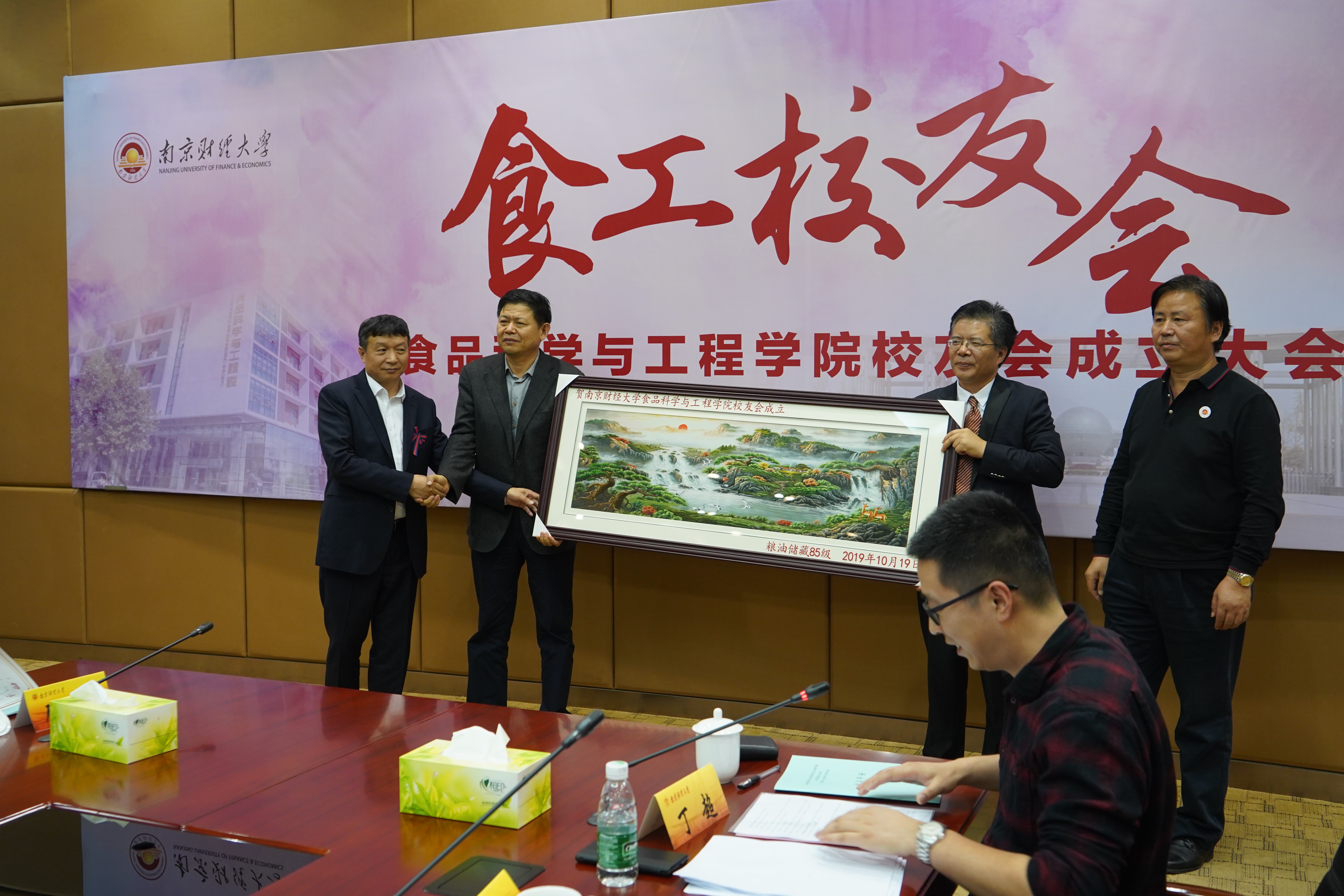 王冲副处长宣读了校友会贺信。粮油储藏85级校友向食工院校友会赠送贺礼,向食工院校友会的成立表示衷心祝贺。