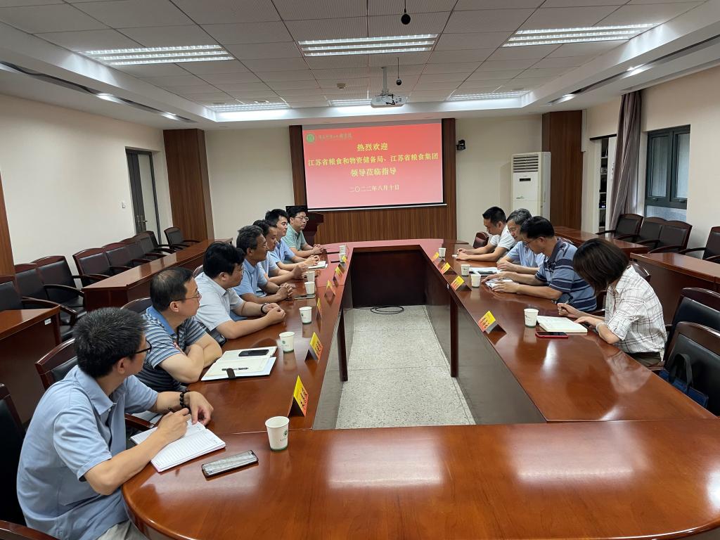 8月10日,江苏省粮食和物资储备局人事处处长李通刚、主任科员王浩,江苏省粮食集团有限责任公司党委组织部(人力资源部)部长施凯、副部长李海云一行来我院调研交流。我院全体领导班子参加了座谈会,座谈会由学院党委书记许文彪主持。
