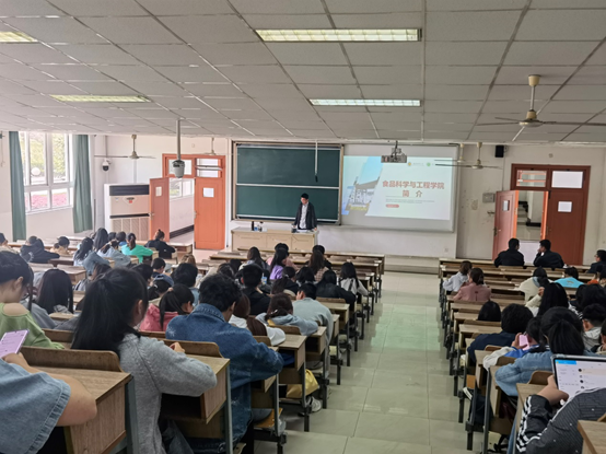 为加深学生对学院本科专业的了解,帮助学生通过专业分流选择适合自己的专业和方向,确保学院2022级本科生专业分流、转专业等各项工作有序推进,学院于2023年4月22日在博远楼JC-103教室举办了“食品科学与工程学院2022级本科生大类招生专业分流宣讲会”,会议由学院副院长沈飞主持,学院食安系主任都立辉、食工系主任裴斐、粮工系副主任王光宇以及学院2022级全体本科生参加了会议。