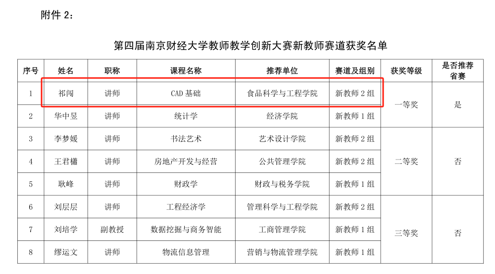 为展示当代高校教师课程建设新经验、高教改革新成果,我校开展第四届南京财经大学教师教学创新大赛产教融合及新教师赛道比赛,我院教师积极参赛。近日赛事结果公布,祁闯老师荣获新教师赛道一等奖。