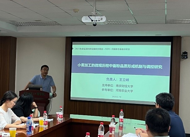 近日,由我院王立峰教授主持的2023年度区域创新发展联合基金重点项目“小麦加工的微观历程中面粉品质形成机制与调控研究”项目启动会在学院211会议室召开。上海理工大学健康科学与工程学院院长艾连中教授、河南工业大学粮油食品学院院长、河南工业大学粮食和物资储备学院院长刘昆仑教授以及南京农业大学食品科技学院杨润强教授作为启动会咨询专家,全体项目组成员参加会议。