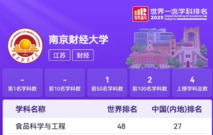 近日,高等教育评价专业机构软科正式发布2025“软科世界一流学科排名”。在此次排名中,我院食品科学与工程学科实现历史性突破,全球排名首次跻身前50,位列第48位。