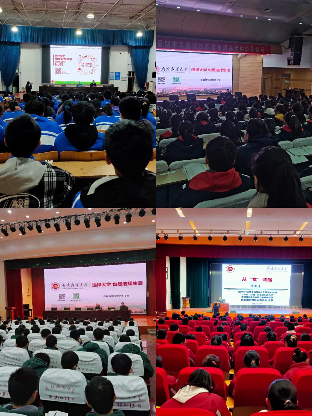 我院教授沈新春、学工办主任石晶晶赴赣榆高级中学和海州高级中学开展“从‘食'谈起”科普讲座,受到中学师生的热烈欢迎。在讲座中,沈教授以“初心和梦想”为切入点,向同学们讲述了他的成长经历以及他作为一名食工人的初心和梦想。在两场讲座过程中,沈新春教授不断与同学们互动,向同学们展示了食品科学与现代科技的融合,激发了同学们对食品学科的兴趣。每场讲座最后,沈新春教授都向同学们介绍了我校相关学科的优势和特色,同时鼓励同学们要树立远大理想,不断追求卓越,用奋斗书写无悔的青春!