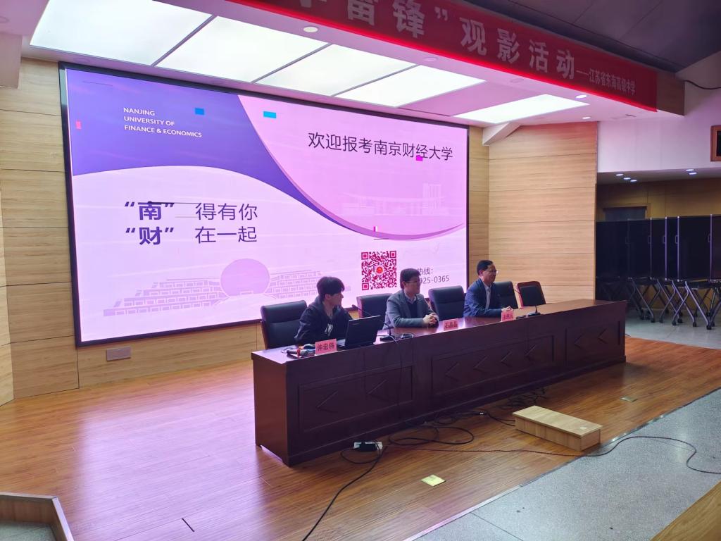 学院学工办主任石晶晶、分团委负责老师仲宏伟先后与两校师生深入交流座谈。石晶晶老师在灌南高级中学主讲了题为“选择大学也是选择生活”的精彩讲座,仲宏伟老师在东海高级中学主讲了提为“南京财经大学院系专业介绍”讲座,向大家详细说明了学校本科生培养机制和各类奖助学金评选体系,并为在场的同学发放了招生宣传手册。
