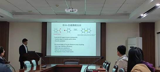 李光磊老师首先介绍了他在日本北海道大学的学习生活经历。接着,李老师介绍了通过铃木-宫浦偶联反应获得的BODIPY荧光材料及近红外化学发光探针材料,其具有发光效率高、稳定性好、毒性低等优点,可用于食品安全快速检测。