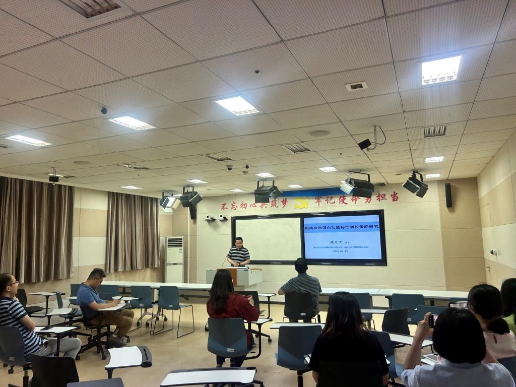 6月13日下午,我院在食工楼214室举办2023年第六期“学术沙龙”活动。刘建辉老师和熊文飞老师分别作了题为“茶多酚调节小肠绒毛长度和脂肪酸代谢的研究”和“粮油植物蛋白功能特性调控策略研究”的学术报告。学院院长助理陆颖健教授和部分师生参加了本次活动。学术沙龙由汤晓智教授主持。