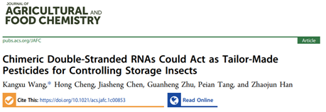 2021年5月26日,J. Agric. Food Chem.在线发表了题为《Chimeric Double-Stranded RNAs Could Act as Tailor-Made Pesticides for Controlling Storage Insects》的研究论文,南京财经大学食品科学与工程学院为第一完成单位。