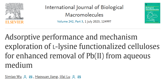 2023年5月25日,南京财经大学食品科学与工程学院吴思邈、陆继来(通讯作者)在国际TOP期刊International journal of biological macromolecules(Q1,IF: 8.025)发表题为“Adsorptive performance and mechanism exploration of l-lysine functionalized celluloses for enhanced removal of Pb(II) from aqueous medium”的研究性论文。