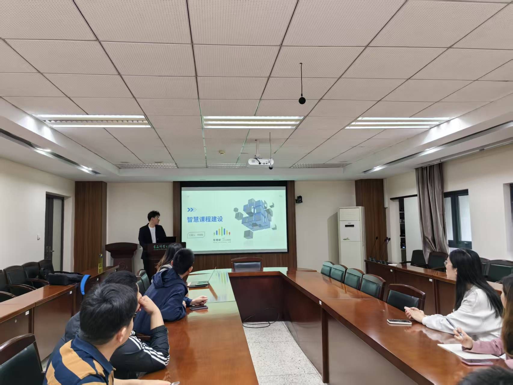 2025年4月22日下午,我院在食工楼211会议室举办“名师名课示范观摩”活动。本次活动邀请智慧树课程建设专家钟铠阳作为主讲嘉宾,围绕“人工智能赋能智慧课程建设及运行”主题展开深度分享。活动由沈飞副院长主持,学院部分教师到场参与学习交流。