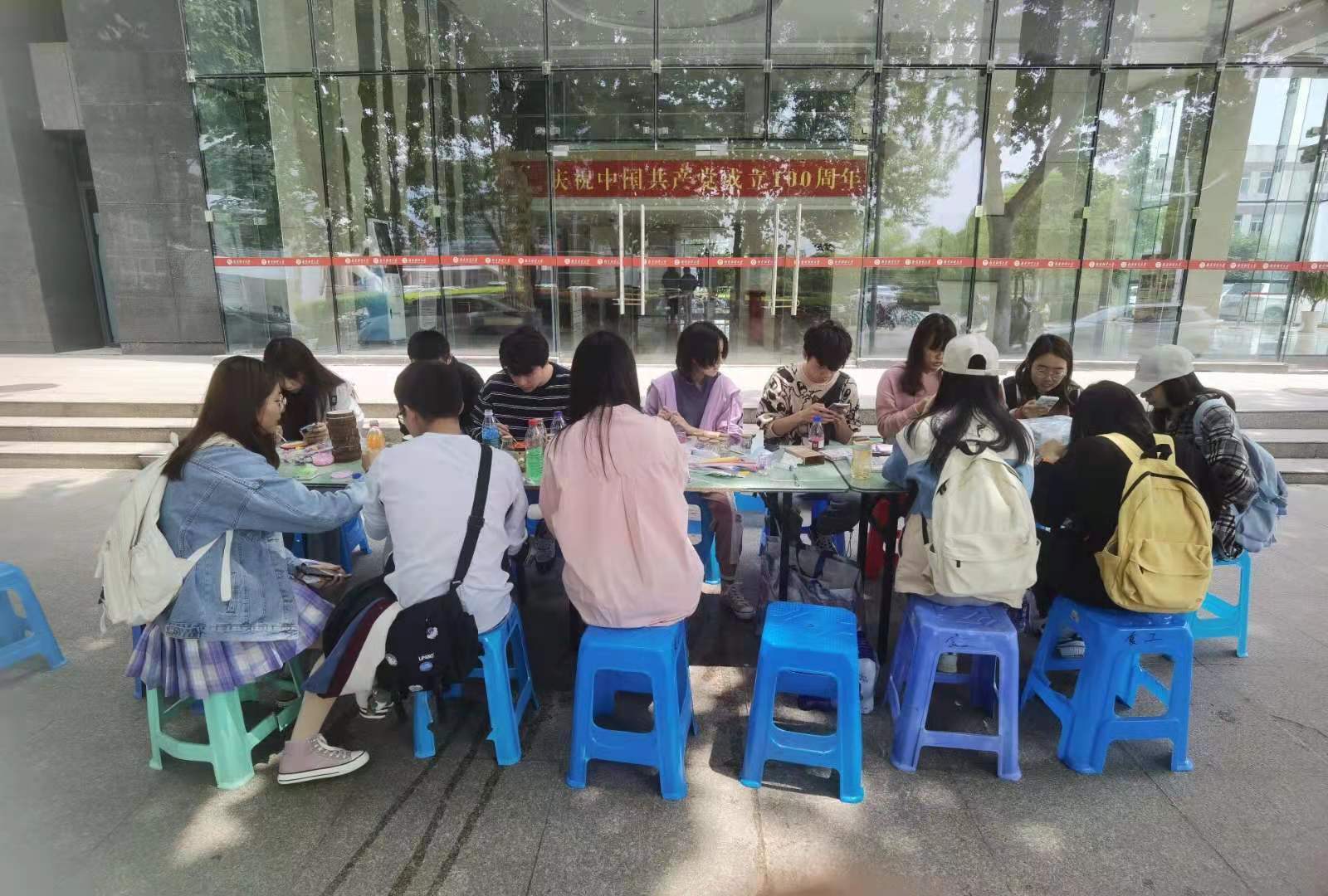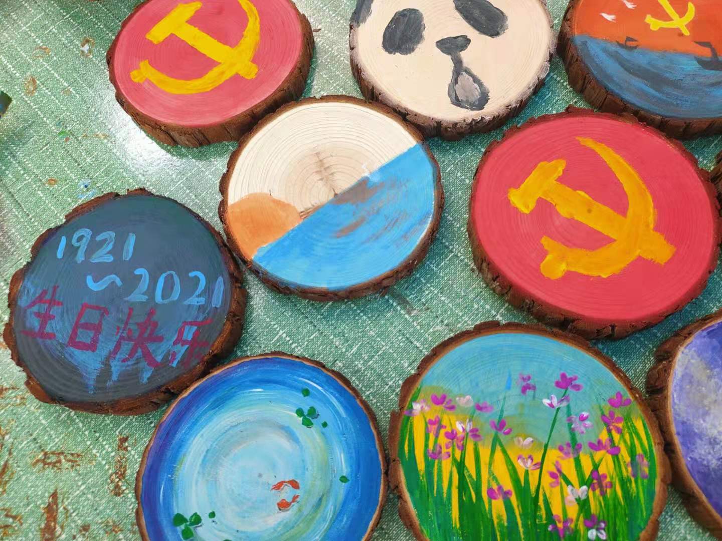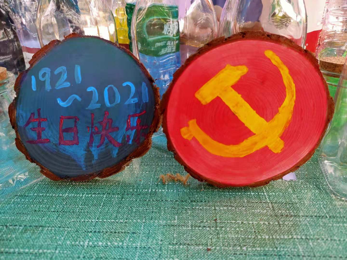 此次活动由绘制原木画,制作星星漂流并瓶,制作海洋瓶三部分组成。前来参与的同学都十分积极,选择了自己感兴趣的手工活动。在绘制原木画的活动中,同学们纷纷开动脑筋,动手专心致志地创作融入自己奇思妙想的作品,大家还在原木板上画出党徽以及生日快乐等字样庆祝中国共产党成立一百周年;在制作星星漂流瓶的活动中,大家团结协作,将星星纸叠起来,小心翼翼放进瓶子里,为达到较好的视觉效果,同学们纷纷出谋划策,热闹非凡;在制作海洋瓶的活动中,同学们都对自己的海洋瓶精雕细琢,争取做出最精美的海洋瓶。