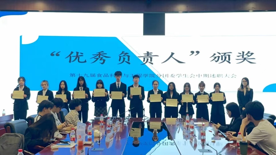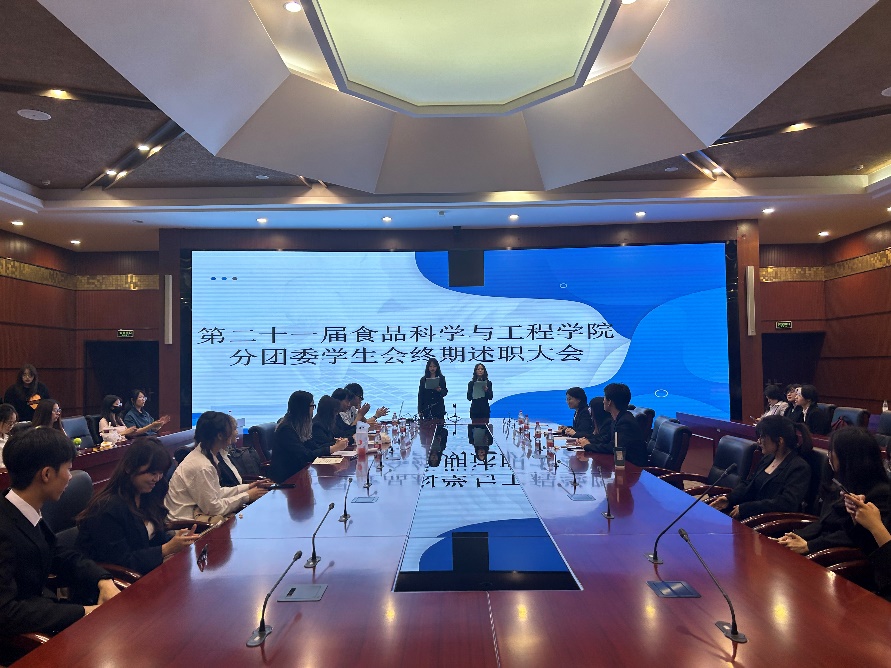 2024年6月2日下午18:30南京财经大学食品科学与工程学院学生会终期述职大会在工科楼2楼会议室正式召开。参加此次会议的有食品科学与工程学院分团委副书记、学生会主席、各中心负责人及项目志愿者。