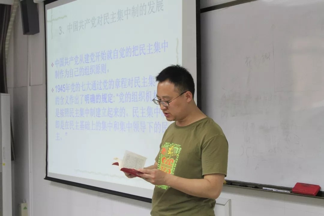 徐老师简单提到正确贯彻执行民主集中制和继续发展和完善民主集中制后,提出了民主集中制的三个层面:宏观(党章民主集中制规定)中观(民主集中制的具体规定、准则、条例)微观(集体领导下的个人分工负责制,健全党委工作制度)。
