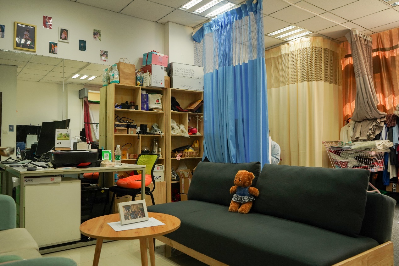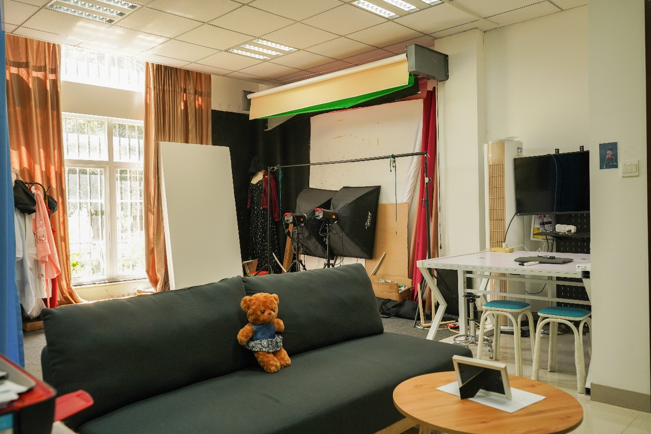在创业园108门口挂着“博零影视”的门牌,二三十平的房间,进门左手边是工作区,右手边用帘幕隔开的是拍摄区。“小胡,拍这个要用黑幕,后面用白光。”这是陈忠森走过工作区对还在工作的“员工”说的。