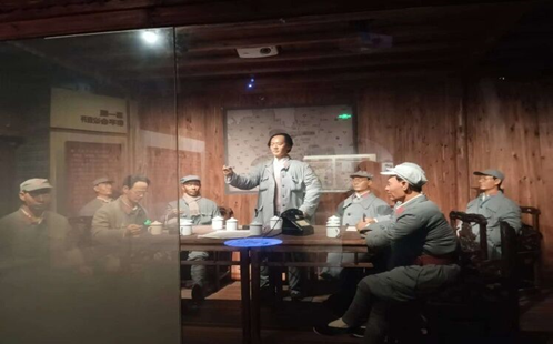 图为馆内蜡像记录的史实 张生海摄