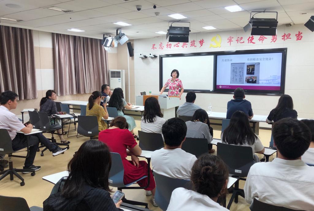 6月9日下午,校党委常委、副校长邱伟芬在仙林校区工科楼214教室为国际合作与交流处、国际教育学院、食品科学与工程学院、红山学院等各基层党支部师生代表讲授题为“勇担时代使命,助力粮食安全”的党史学习教育主题党课。国际合作与交流处、国际教育学院、食品科学与工程学院、红山学院等领导班子代表,国际交流与合作处党支部代表、食品科学与工程学院研究生第一党支部学生代表参加党课学习。