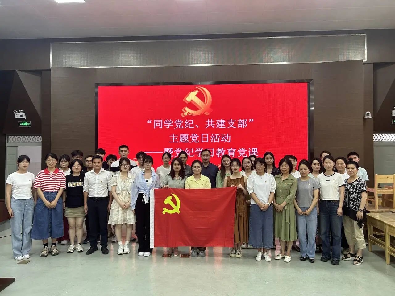为深入学习贯彻习近平总书记关于全面加强党的纪律建设的重要论述,认真落实中央和省市区委关于加强党建引领基层治理部署要求,6月25日,南京师范大学附属中学仙林学校小学部党委与南京财经大学食品科学与工程学院党委共同开展“同学党纪、共建支部”主题党日活动——暨党纪教育专题党课学习。我校马克思主义学院杨容刚副教授围绕《中国共产党纪律处分条例》讲授专题党课。南师附中仙林小学部党委党员教师代表和食品科学与工程学院党委教师代表、部分研究生党员参加了活动。
