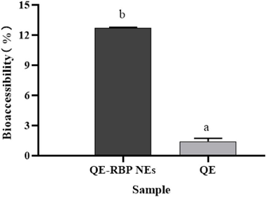 图3 QE-RBP NEs 和游离QE的生物利用度