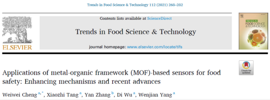 2021年4月16日,我院汤晓智教授课题组与河北食品检验研究院张岩研究员联合在食品国际顶尖学术刊物《Trends in Food Science & Technology》(一区,IF=11.077)在线发表了题为 “Applications of metal-organic framework (MOF)-based sensors for food safety: Enhancing mechanisms and recent advances” 的高水平综述论文。该论文以南京财经大学为第一单位,程玮玮博士为第一作者。该项研究工作得到了国家重点研发计划、江苏省高等学校自然科学研究面上项目及江苏省高校优势学科建设工程项目的资助。