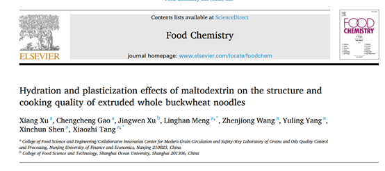 2021年11月16日,我院汤晓智教授课题组在《Food Chemistry》(一区,IF=7.514)在线发表了题为“Hydration and plasticization effects of maltodextrin on the structure and cooking quality of extruded whole buckwheat noodles”的研究论文,该论文以南京财经大学为第一单位,汤晓智教授和孟令晗博士为共同通讯作者。