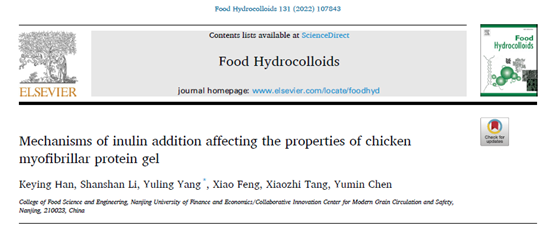 2022年5月30日,杨玉玲教授在Food Hydrocolloids发表了题为Mechanisms of inulin addition affecting the properties of chicken myofibrillar protein gel的研究论文,该论文以南京财经大学为第一单位,杨玉玲教授为通讯作者。
