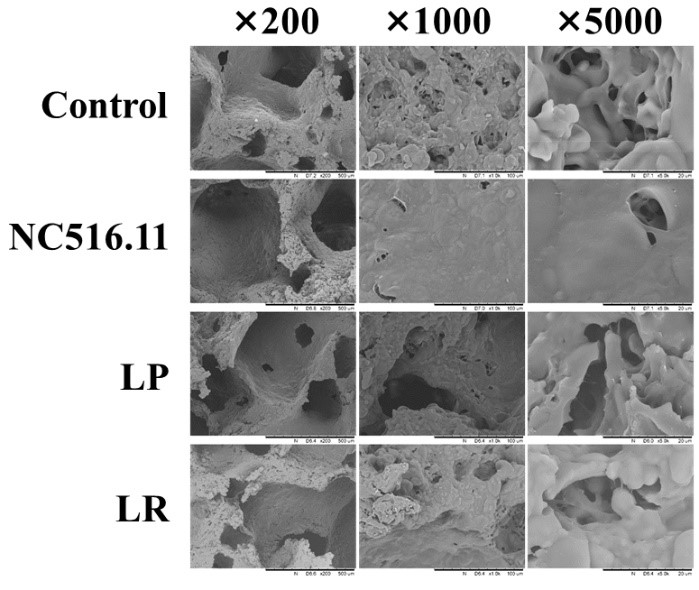 高产EPS乳酸菌W. cibaria NC516.11发酵荞麦面团,其代谢产生的EPS取代麸质介入到荞麦面团发酵中,可以增强分子间氢键,改善分子交联,减少淀粉的再结晶,促进面团中水分与其他组分结合形成有效网络结构,从而提高面团流变学特性,实现荞麦面团及其制品感官品质的有效改善。