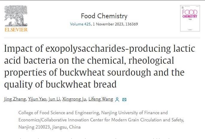2023年5月22日,南京财经大学食品科学与工程学院张晶、王立峰(通讯作者)在国际TOP期刊Food Chemistry (Q1,IF: 8.8)发表题为“Impact of exopolysaccharides-producing lactic acid bacteria on the chemical, rheological properties of buckwheat sourdough and the quality of buckwheat bread”的研究性论文。