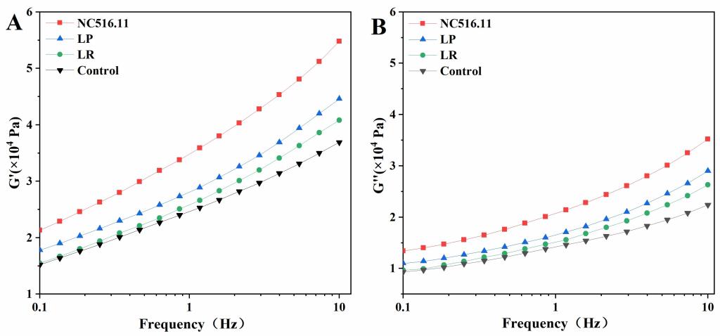 图3 不同乳酸菌发酵酸面团的动态频率扫描